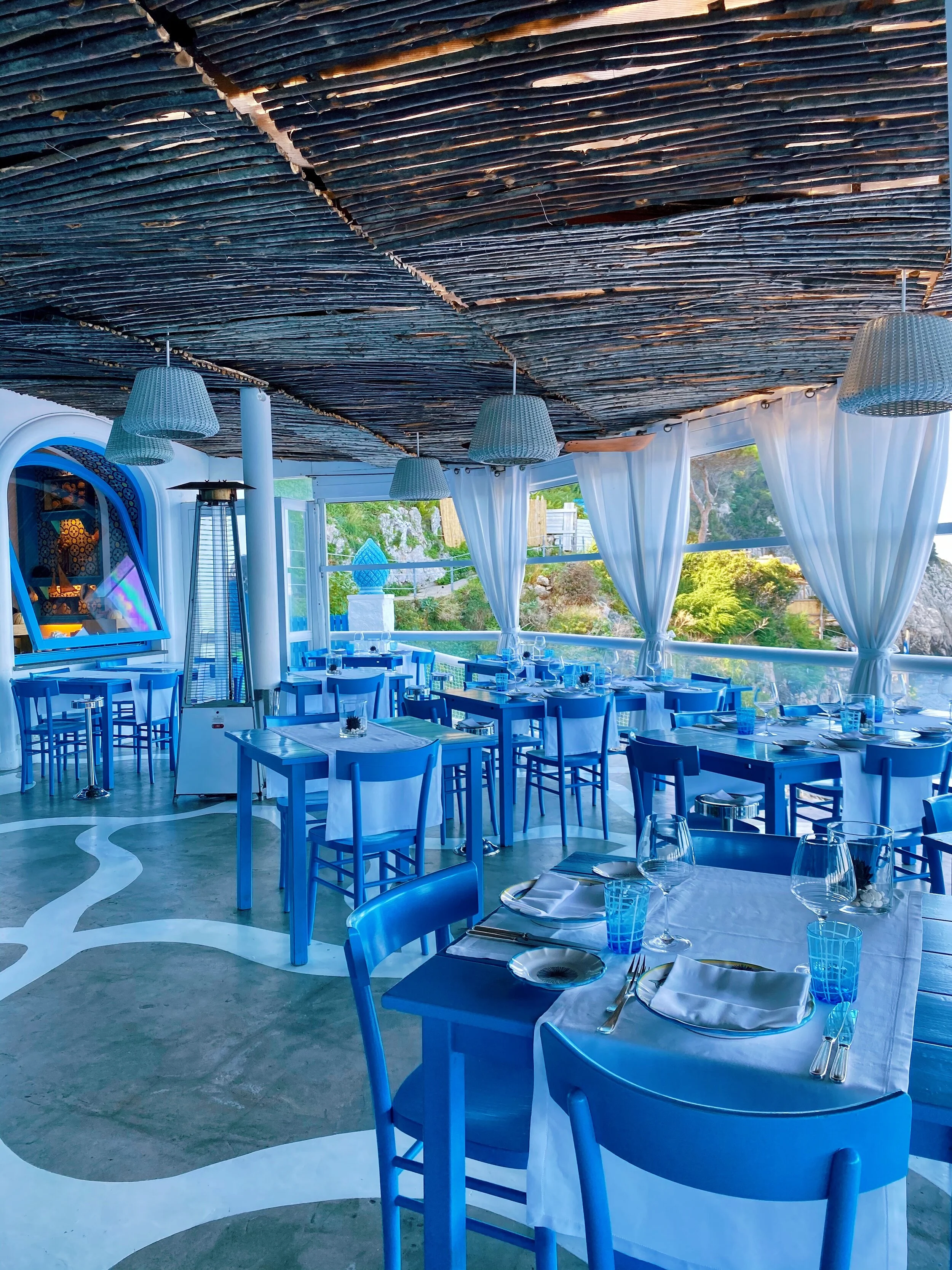I am delighted to share my favorite event venue in all of Capri for a true Italian coastal event: il Riccio. This sparkling blue gem of a beach club is part of Capri Palace, and there are shuttles that take guests to and from the hotel to the beach club frequency. If you’re wondering… YES, you can privatize this entire beach club for yourself. I love this venue for a relaxed wedding (you could have the wedding ceremony at the upper level with open skies, then move the reception and after-party to the lower level where the main restaurant is located); the venue is also wonderful for other special events such as birthdays or anniversary parties. Did I mention the food is finger-licking good?