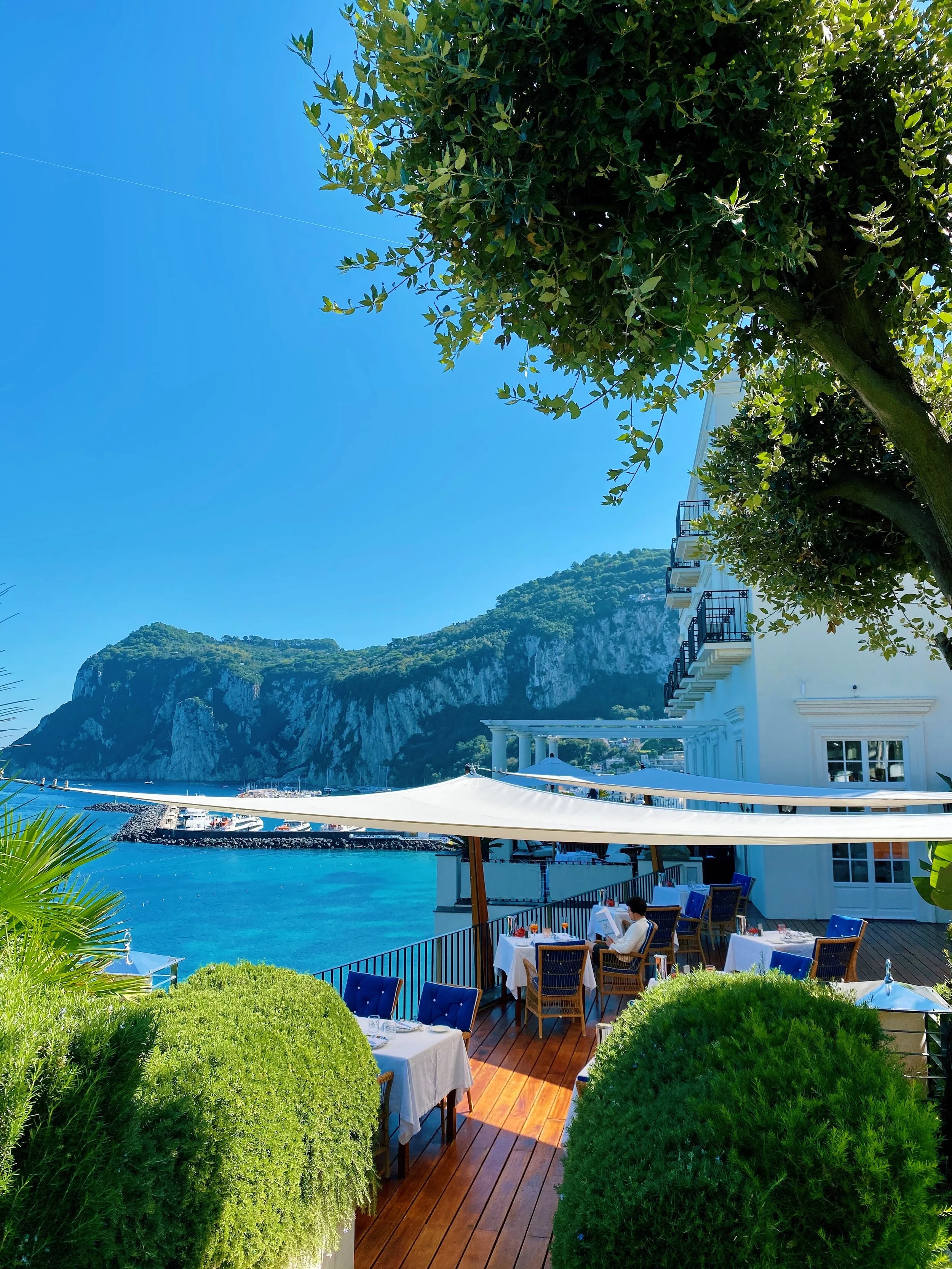 Located in the heart of Anacapri, Capri Palace is a super lux experience. I couldn’t get enough of the divine pizza served on the terrace restaurant, the vibrant orange sun chairs by the pool, and the Loro Piana covered cushions and couches in the hotel’s Michelin Star restaurant. For weddings and events with more than 100 guests in Capri, Capri Palace is my go-to recommended venue. The multiple event spaces available on the property is a wedding planner’s dream; it is perfect for creating different experiences as guests move along the event journey, constantly surprised and entertained.
