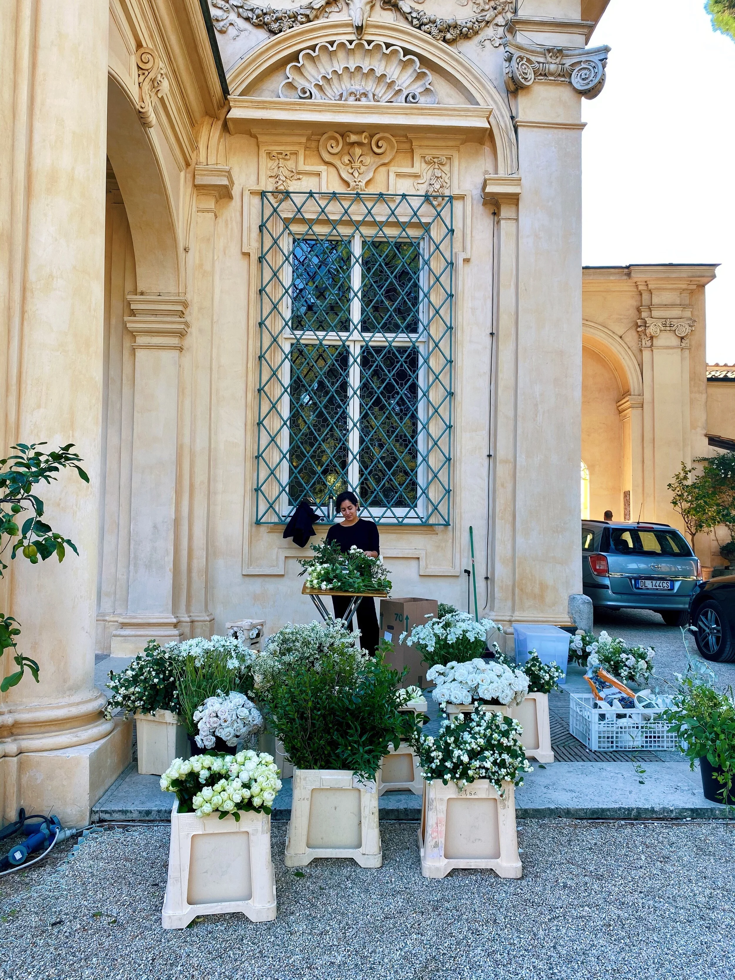 Have a large guest list for your Rome wedding? Looking for a venue close to the city center, but don’t want the typical indoor ballroom wedding? Villa Miani is my go-to venue recommendation for large weddings just outside the Eternal City. With it’s massive indoor and outdoor event spaces, couples should only consider this venue if they have a guest list of 200+ people, to avoid having the space feel too empty (the terrace right beyond the Villa can seat up to 400 guests alone!). You will find gorgeous marble floors, grand chandeliers, and special details such as this wallpaper in the Villa’s entryway. I’ve never seen walls kept so white and conditions kept so pristine as they are at Villa Miani.